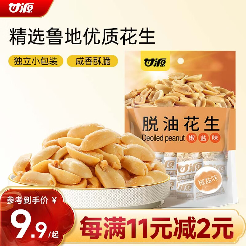 甘源牌脱油花生椒盐味下酒脱皮花生米坚果炒货休闲零食小吃208g