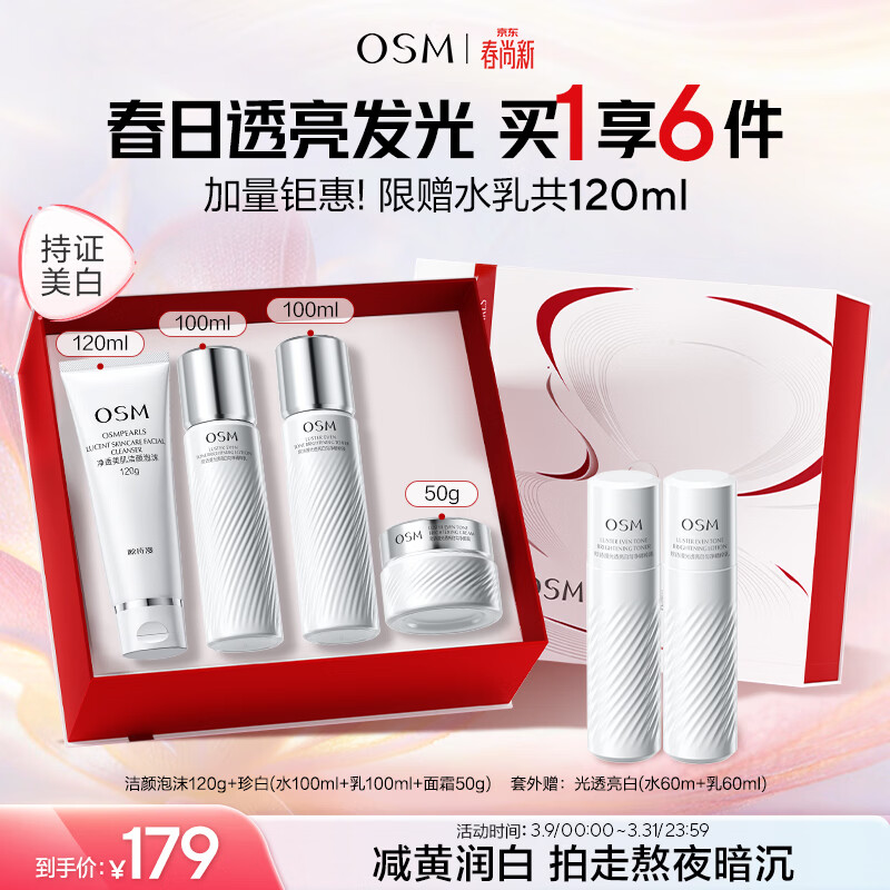 欧诗漫(OSM)珍白护肤品套装洁水乳精华面霜美白补水 3.8女神节礼物