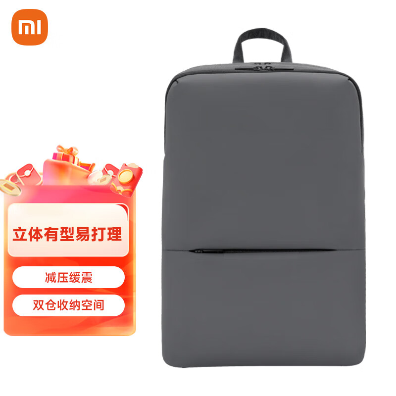 小米(MI)经典商务双肩包简约笔记本电脑背包男女学生书包深灰色