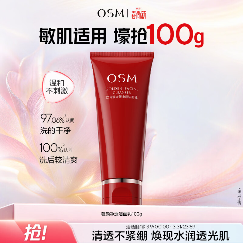 欧诗漫(OSM)奢颜净透洁面乳100g清洁补水保湿洗面奶3.8女神节礼物