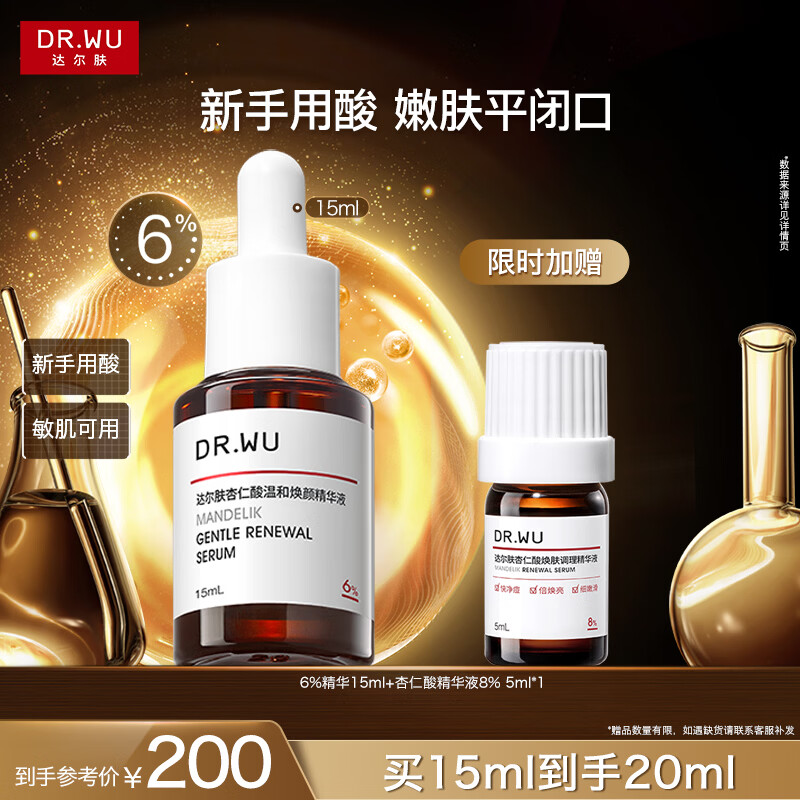 达尔肤(DR.WU)杏仁酸精华6%15ml三重酸果酸细腻肌肤去角质闭口收毛孔提亮护肤