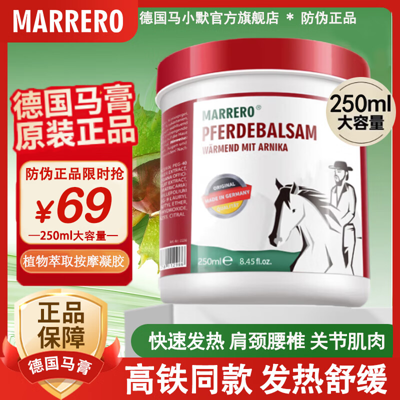 MARRERO德国马膏原装进口250ml 马小默舒缓凝胶热感按摩膏肌肉关节疼小飞