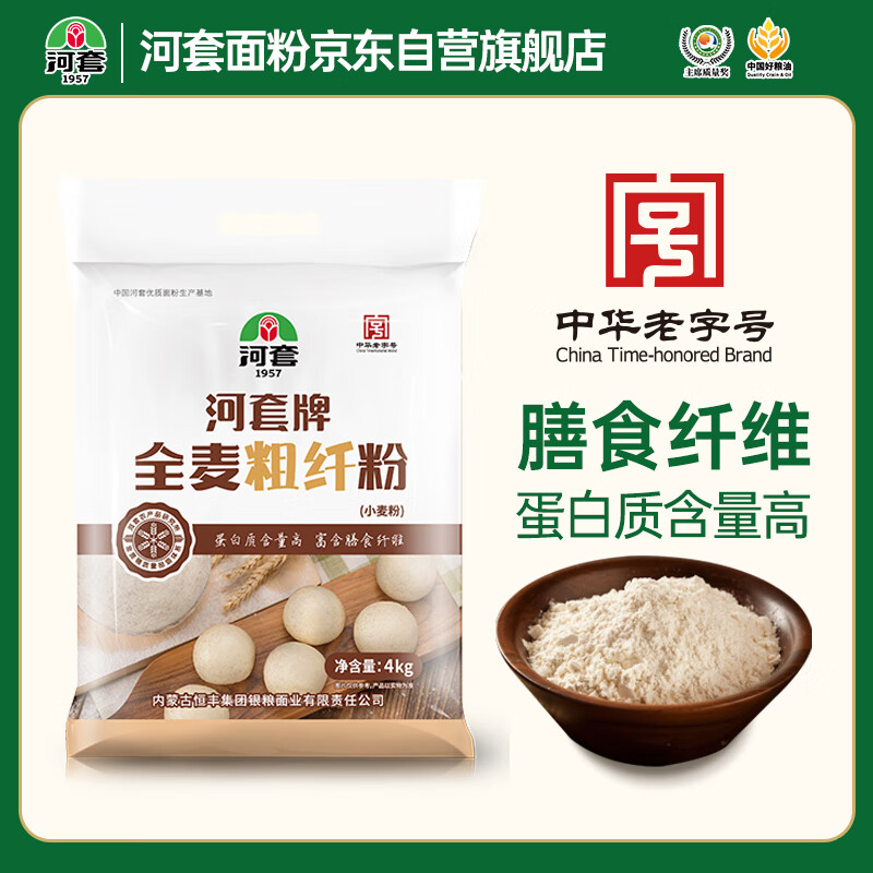 河套 全麦粗纤粉8斤 中华老字号 小麦粉含麦麸皮
