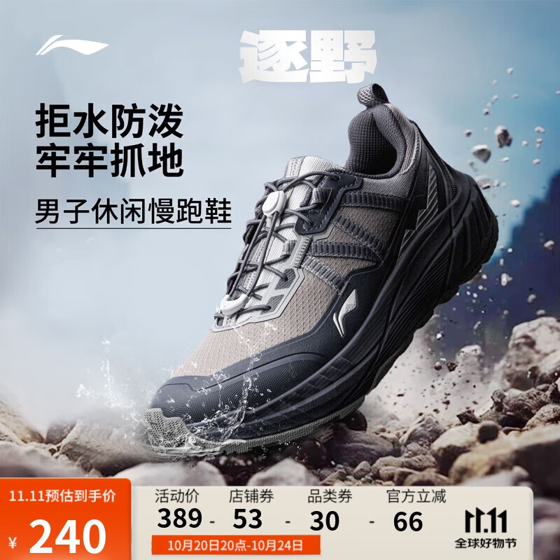 李宁逐野丨防泼水休闲慢跑鞋男子25新款舒适低帮运动鞋ARSV161