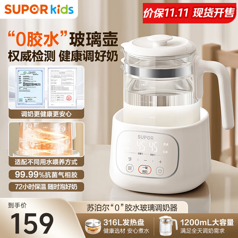 苏泊尔(SUPOR)恒温水壶婴儿调奶器0胶水恒温壶冲奶玻璃壶泡奶保温烧水热水壶 【重磅新品】0胶水调奶器 1.2L