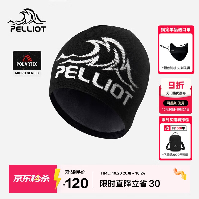 伯希和(Pelliot)【晴川】户外羊毛帽男女轻量保暖针织帽子男登山徒步105434006黑