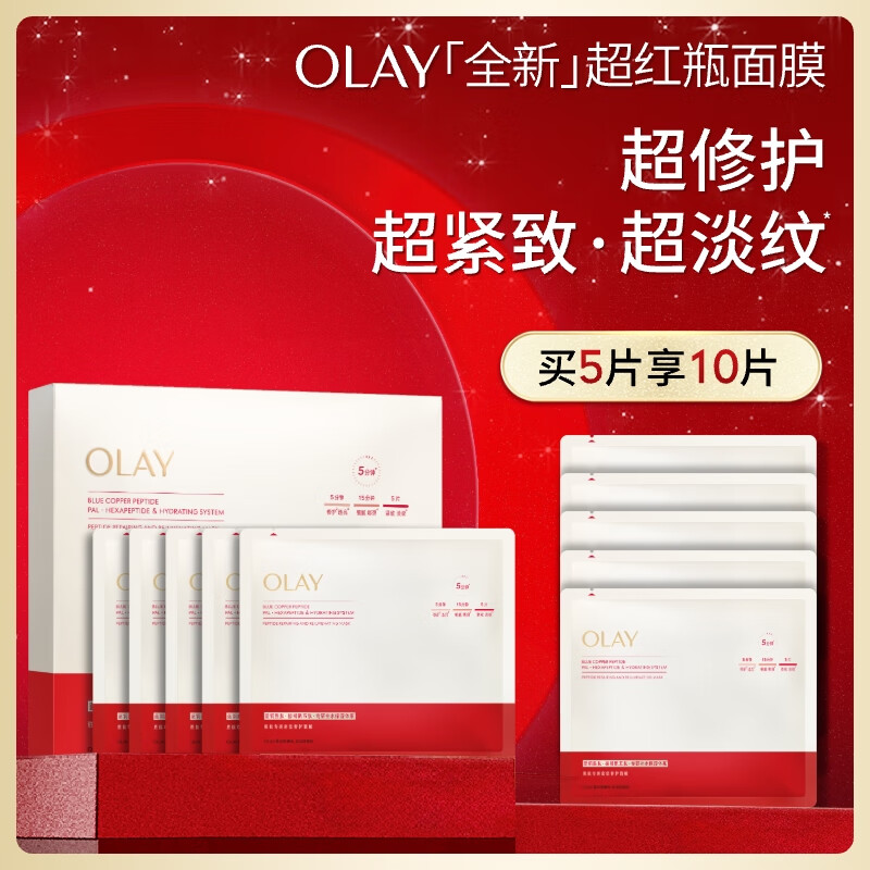 玉兰油(OLAY)全新超红瓶面膜5片抗皱紧致抗衰老补水保湿护肤品生日礼物送女友