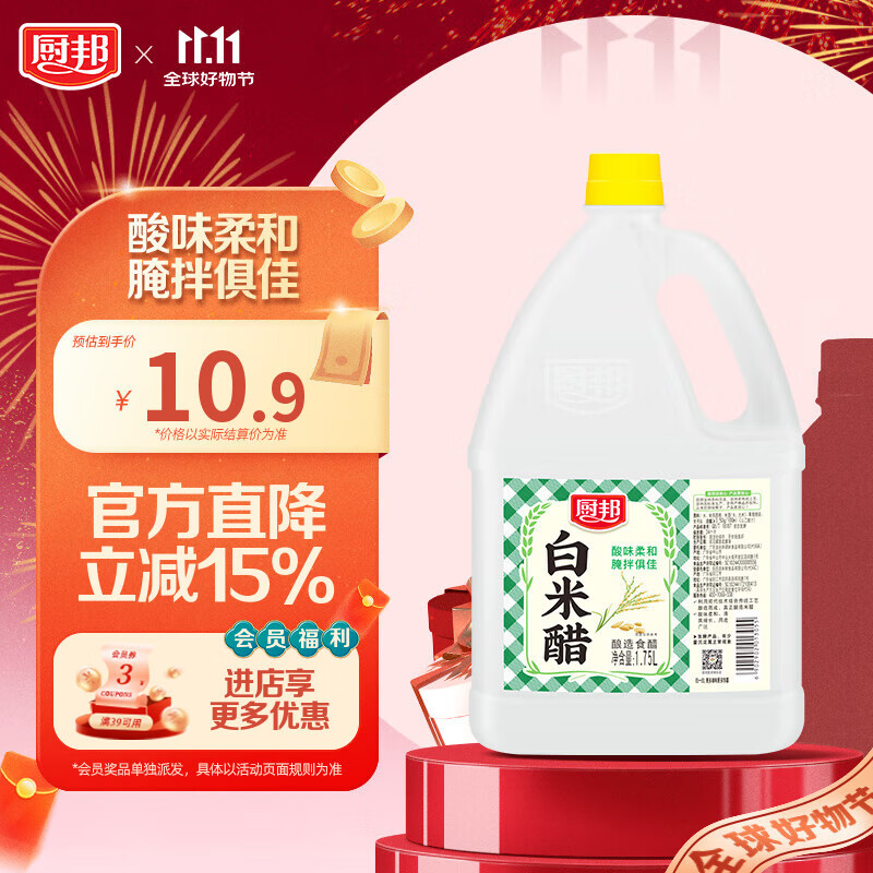 厨邦白米醋1.75L 3.5度 实惠大桶 蘸料凉拌酸味柔和清爽 食用清洁俱佳