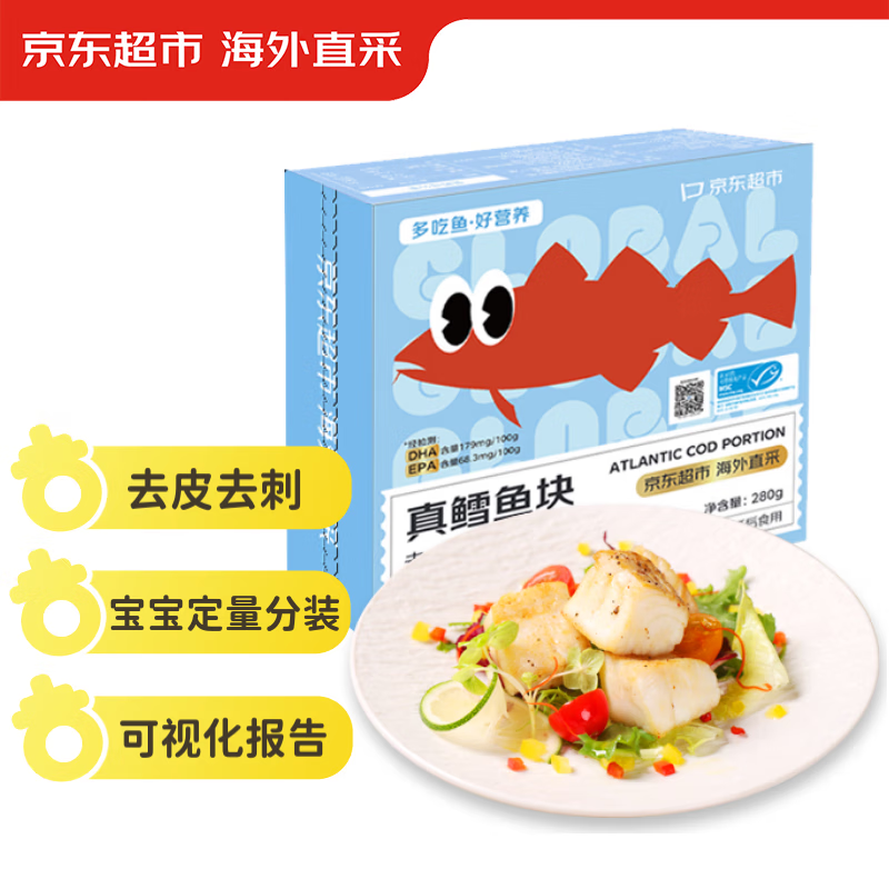 京东超市 大西洋真鳕鱼块 280g 宝宝辅食 去皮去刺 独立真空 婴儿食谱