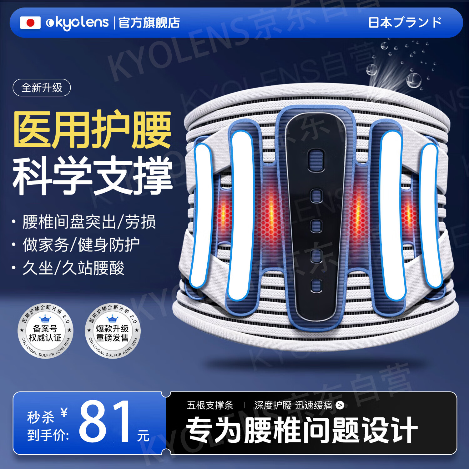 KYOLENS日本医用级护腰带腰间盘突出运动腰肌椎脱劳损腰部支撑自发热保暖