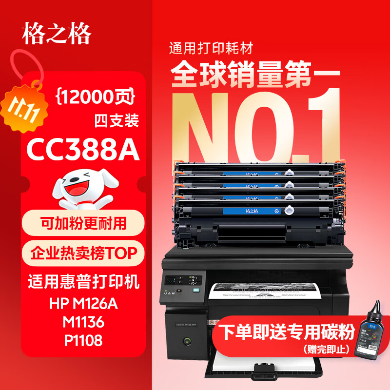 格之格cc388a硒鼓 m1136硒鼓适用惠普88a硒鼓p1008 p1108 p1106 m126nw m128fn打印机惠普m126a墨盒388a硒鼓4支