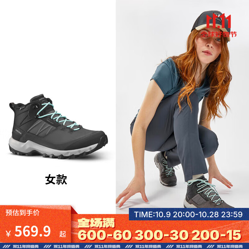 迪卡侬徒步鞋女户外休闲登山鞋女防滑防水透气春秋中帮 MH500 黑色 38