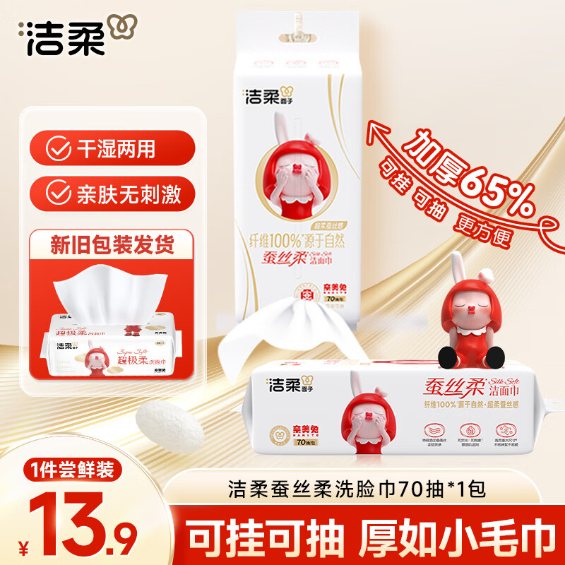 洁柔洗脸巾悬挂式70抽 加大加厚绵柔巾母婴可用 超级柔医护级柔巾