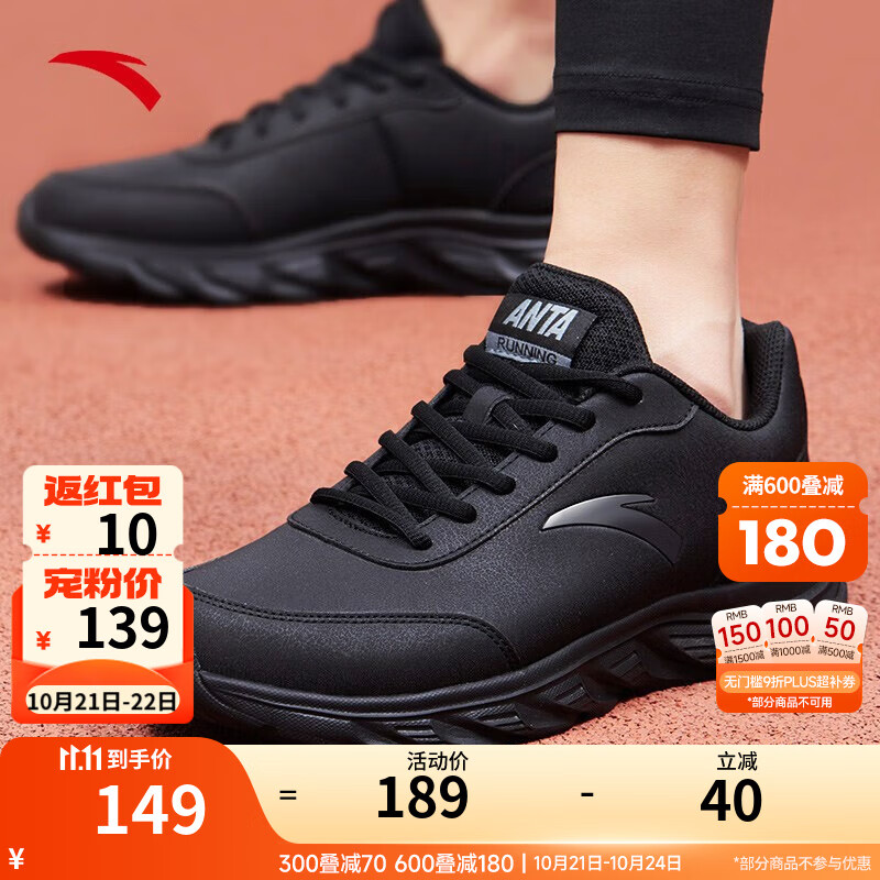 安踏男鞋运动鞋男秋冬季软底耐磨防泼水皮面跑步鞋减震户外休闲鞋子男 【推荐款-防泼水皮面】5529-6黑 42 (260mm)