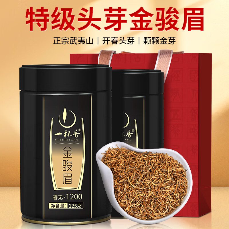 一杯香茶叶红茶头芽金骏眉特级武夷山250g新茶礼盒装送礼自己喝自饮古树