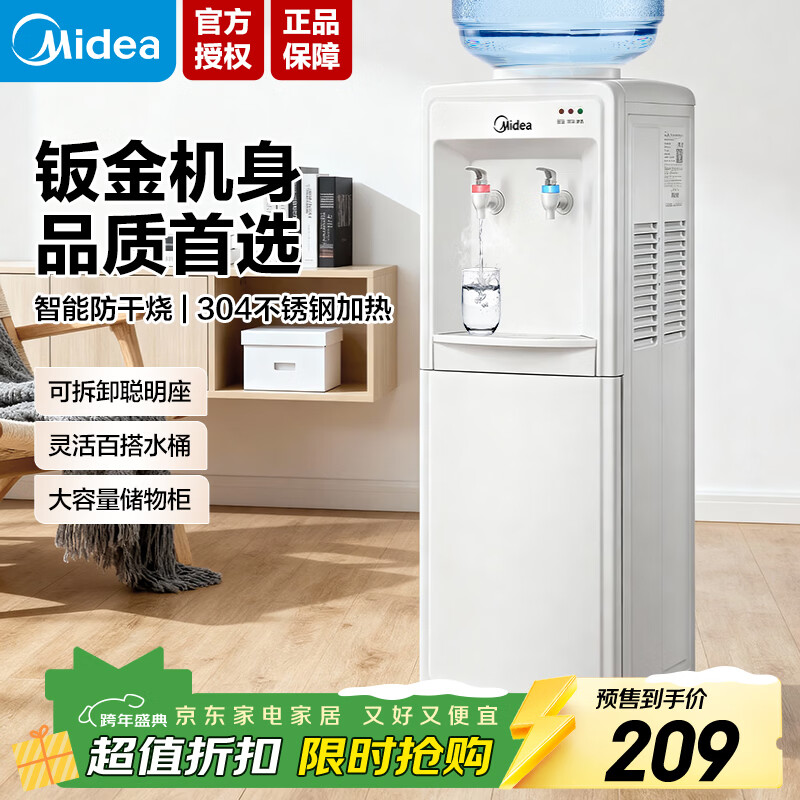 美的(Midea)饮水机茶吧机家用上置式下置式桶装水立式饮水一体机桶装宿舍办公室 饮水器烧水壶上水器 国家补贴 温热速供 304 钢胆 易操作 制热型 MYR718S-X