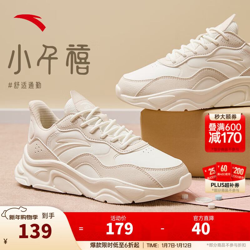 安踏小千禧丨休闲鞋女鞋革面防泼水复古增高厚底软底冬季老爹鞋运动鞋 【革面】泥沙灰/象牙白-6 37.5