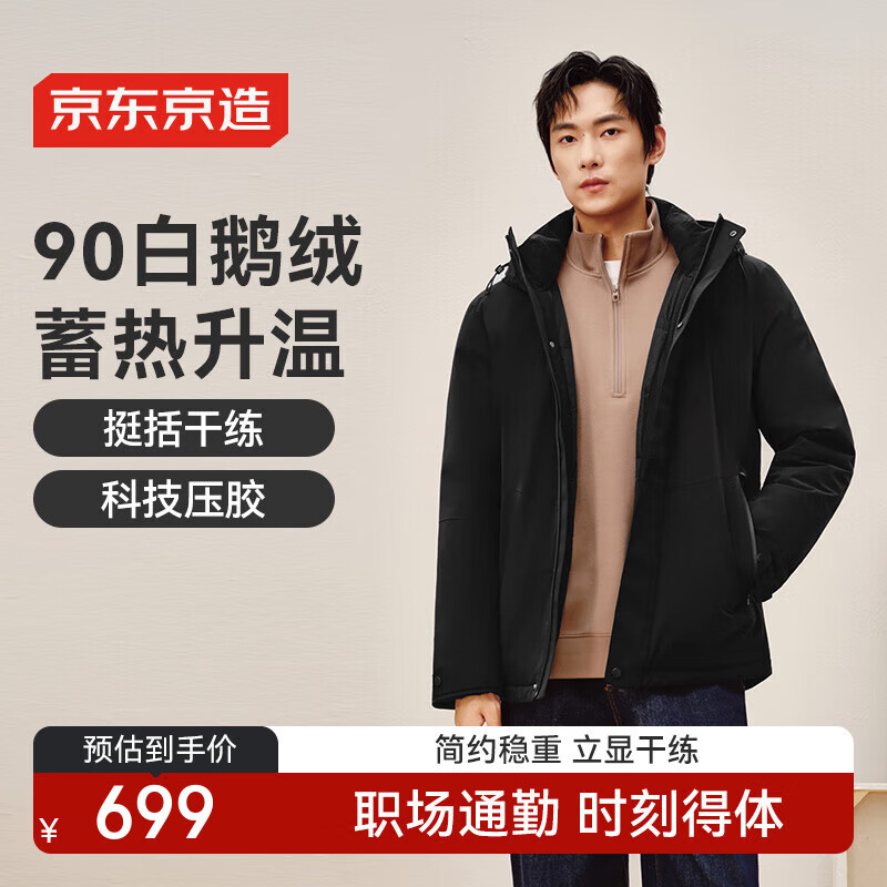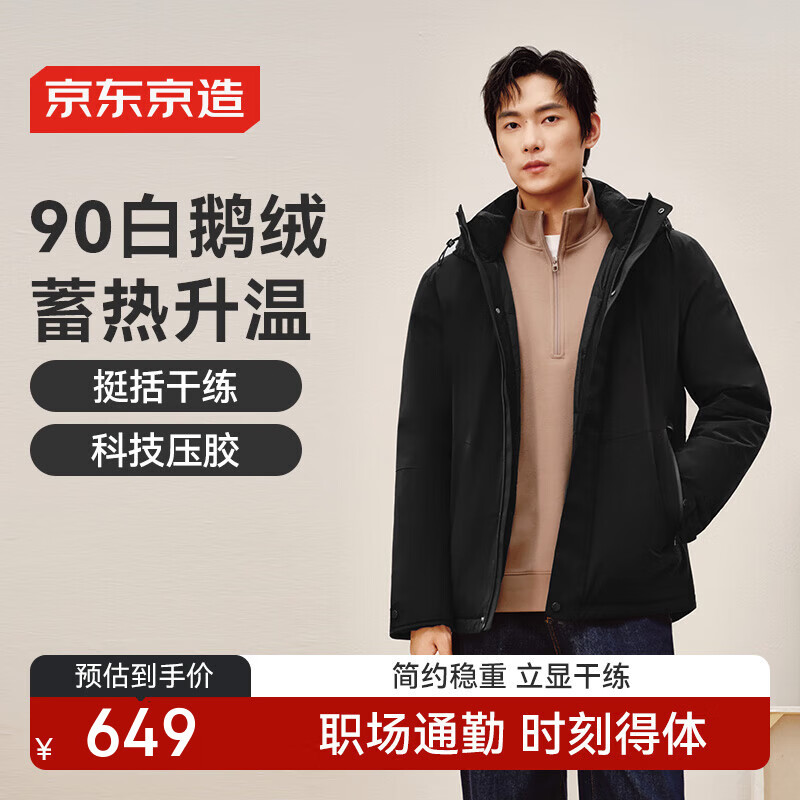 京东京造 行政商务连帽羽绒服 黑色 XL