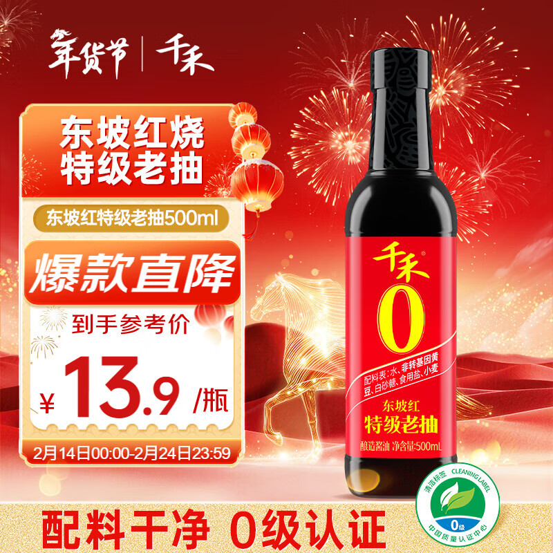 千禾 东坡红 特级老抽 500mL【0添加 特级老抽】酿造上色家用调味品