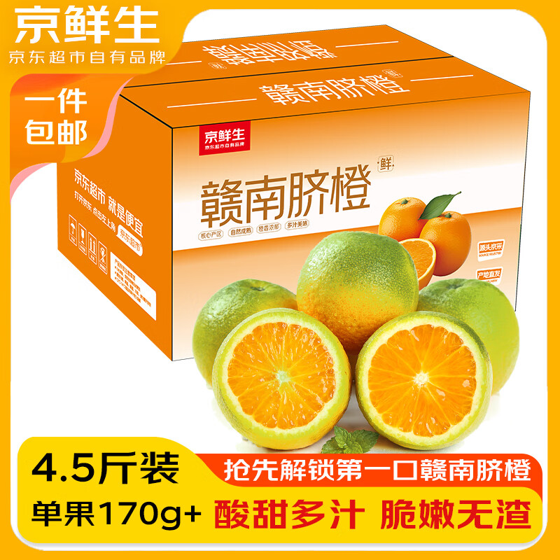 京鲜生 江西赣南脐橙早橙净重4.5斤 单果170g+ 生鲜水果 源头直发包邮