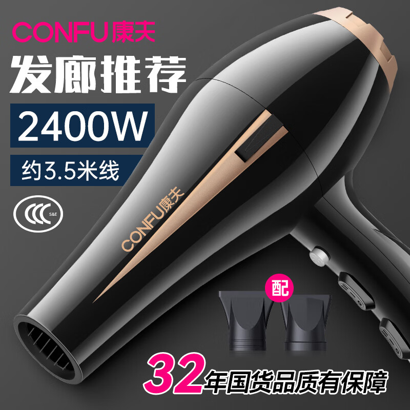 康夫(CONFU)【发廊专用款】吹风机理发店 2400W大功率大风力吹风机恒温速干吹风筒 KF-8894 【睿智黑】发廊推荐款-3.5M线长