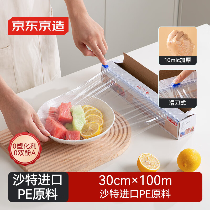 京东京造 保鲜膜食品级大碗 耐高温滑刀式 送切割器 30cm×100m
