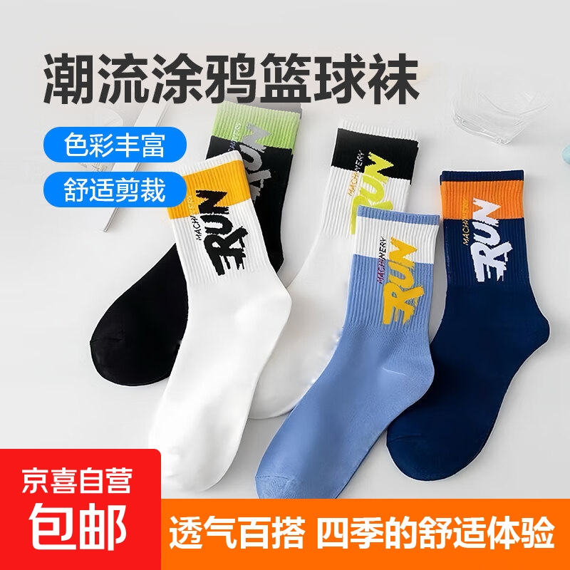 【运动潮流】男女情侣袜四季字母运动ins透气吸汗百搭袜子 5双装【每色一双】