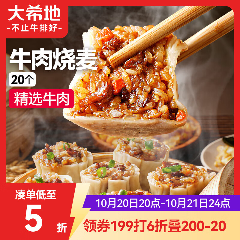 大希地鲜香牛肉烧麦 1000g 20个 冷冻半成品 家庭早餐面点 加热即食