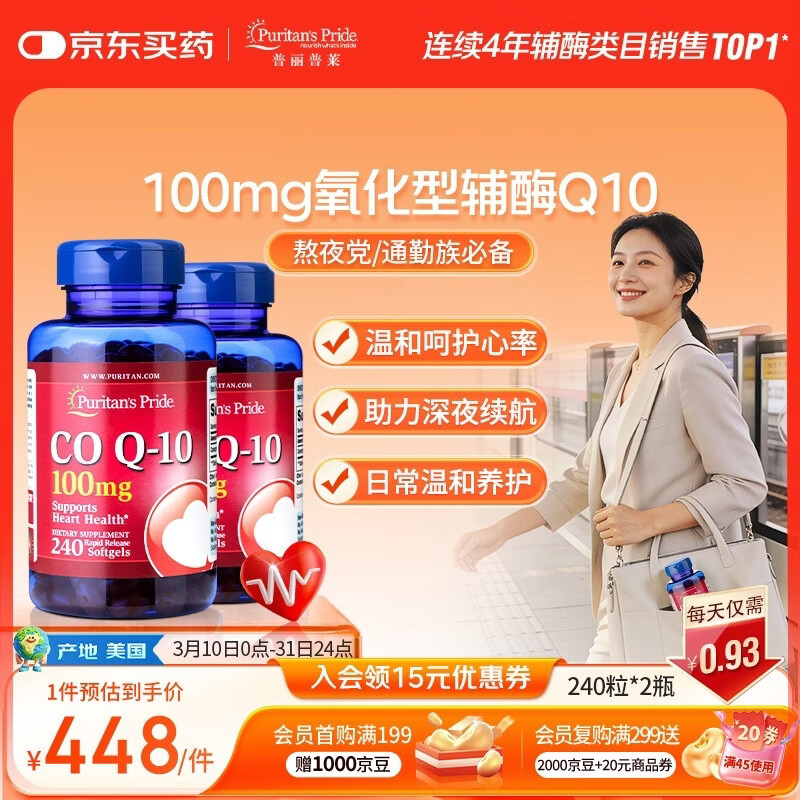 普丽普莱辅酶Q10软胶囊高活性呵护心血管加班熬夜美国进口100mg240粒*2瓶