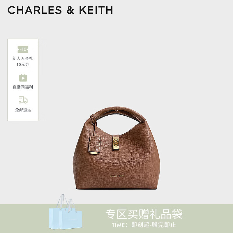 CHARLES&KEITH简约手提包菜篮子包斜挎包生日礼物送女友CK2-10701618 Chocolate巧克力色 M