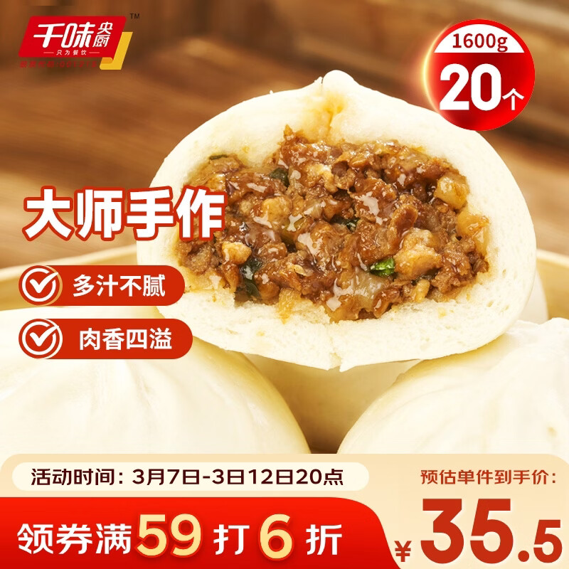 千味央厨猪肉鲜葱800g+酱肉馅800g共20个手工大肉包子早餐食品冷冻半成品