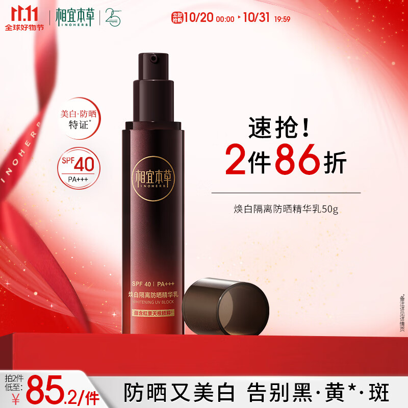 相宜本草焕白隔离防晒精华乳50g(防晒 淡斑美白提亮)礼物