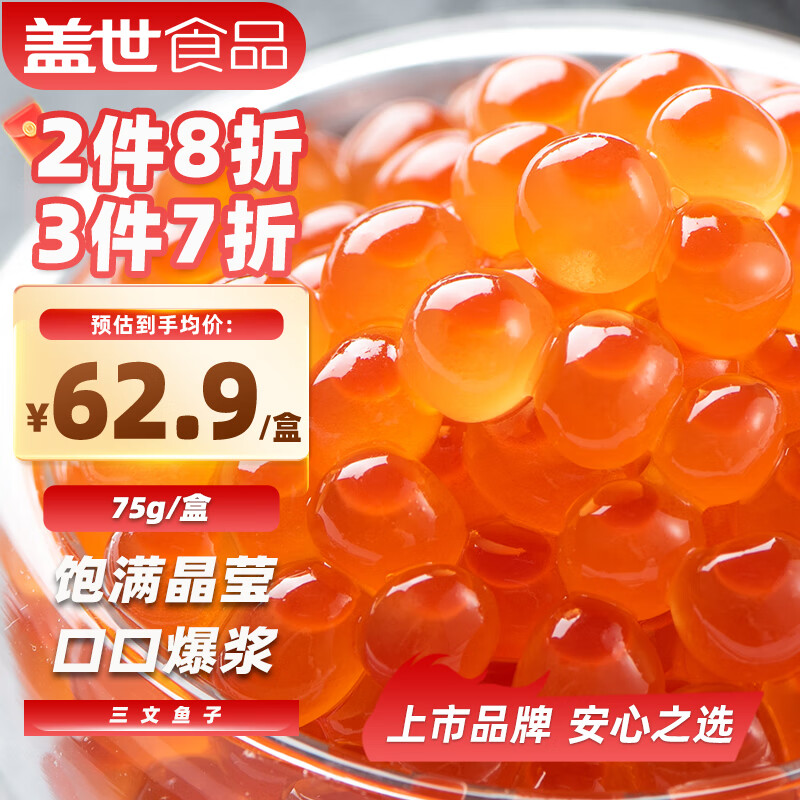 盖世三文鱼籽酱75g 大颗粒鱼子酱寿司料理食材 西餐日料食材