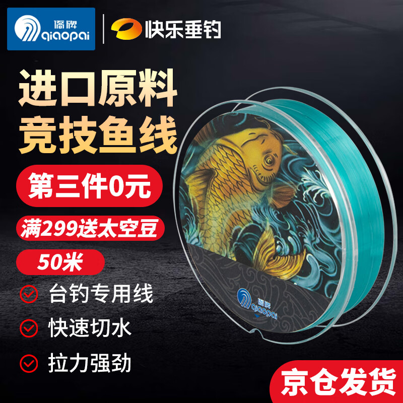 僑牌进口原料竞技成品钓鱼线台钓野钓海钓渔具强拉力路亚线子主尼龙线 金侨-主线-湖蓝色50米 1.0号