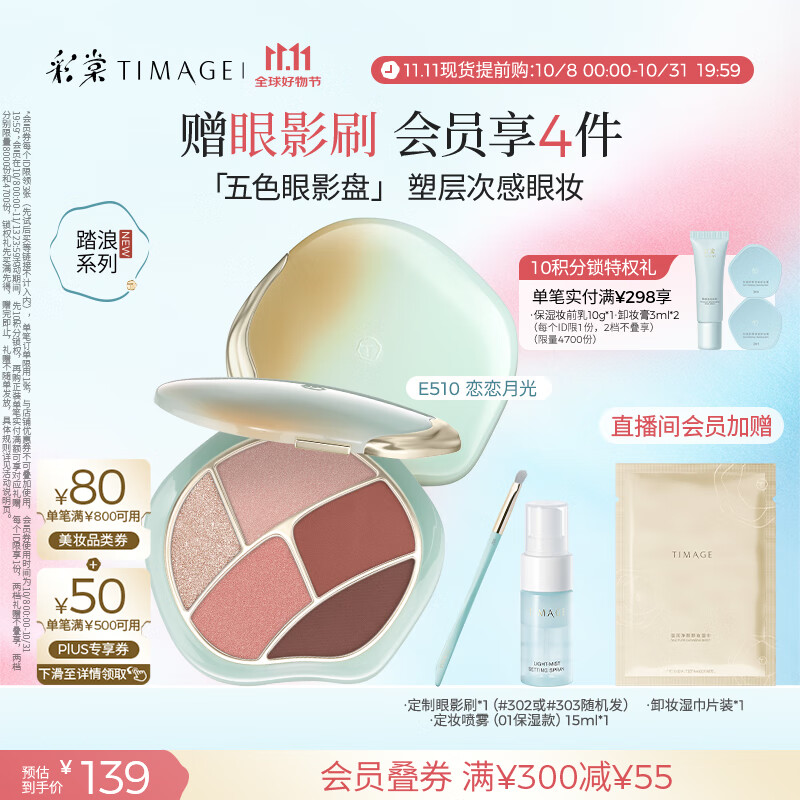 彩棠(TIMAGE)五色眼影盘E510甜粉盘珠光哑光烤粉质细腻持久显色女神节礼物女友