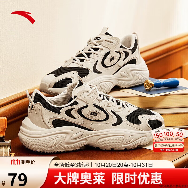安踏奥特莱斯星光老爹鞋男秋冬季厚底情侣休闲鞋复古跑步运动鞋