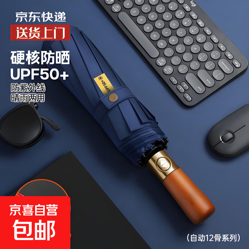108骨雨伞自动男女折叠加大太阳伞晴雨两用伞防晒防紫外线遮阳伞 奢华实木108骨晴雨伞-藏青