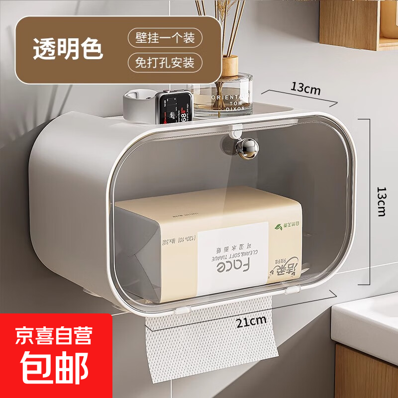 创意免打孔壁挂式笑脸纸巾盒 多巴胺笑脸卫浴套件 磁吸开盖纸巾盒-透明盖
