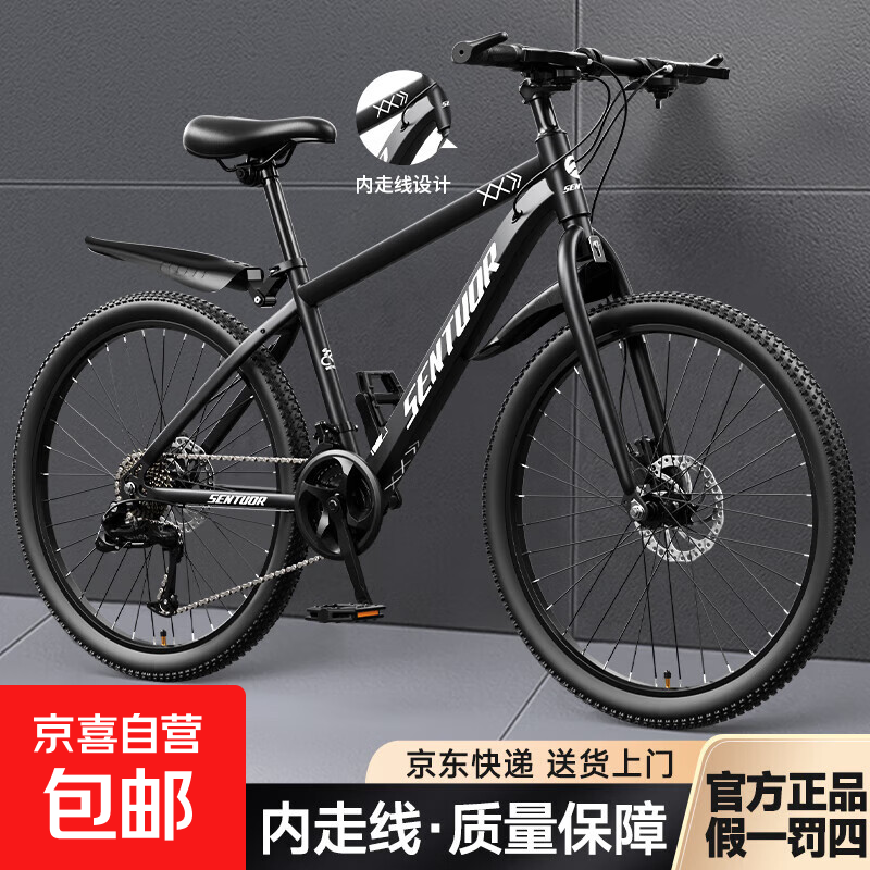 山地自行车成人学生青少年单车铝合金变速公路越野男女士初高中 【性价比爆款】辐条轮钢架曜石黑 26寸21速【适合:160-180cm】