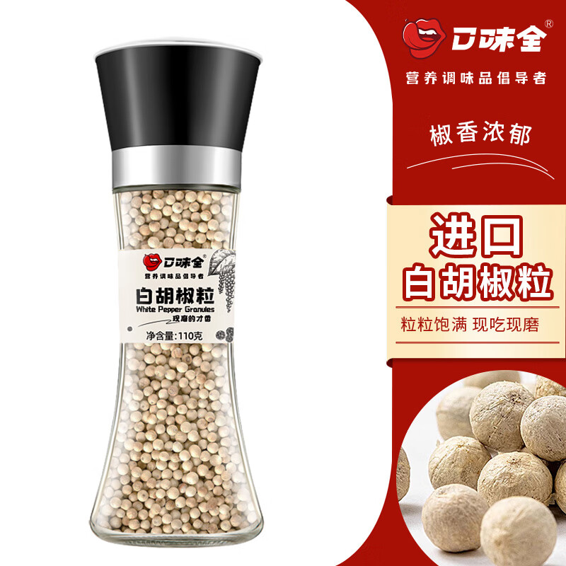 口味全 白胡椒粒研磨碎粉瓶110g进口胡椒香辛料烧烤煲汤牛排调料
