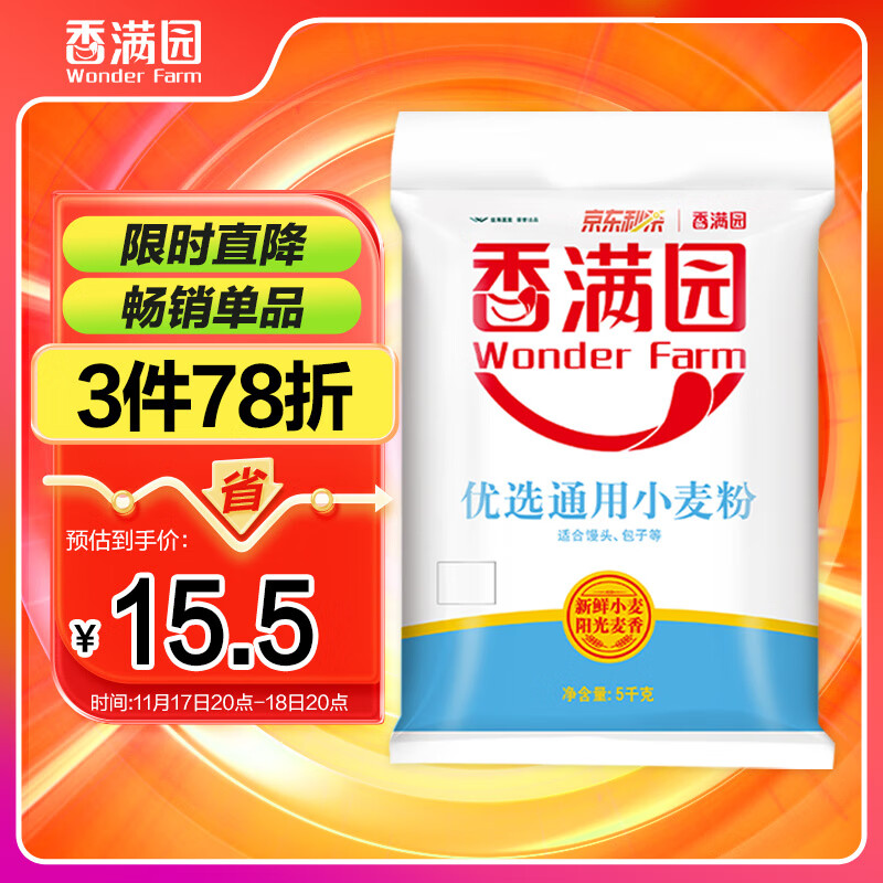 香满园 面粉 中筋粉 优选通用小麦粉 10斤 包子饺子馒头饼手擀面