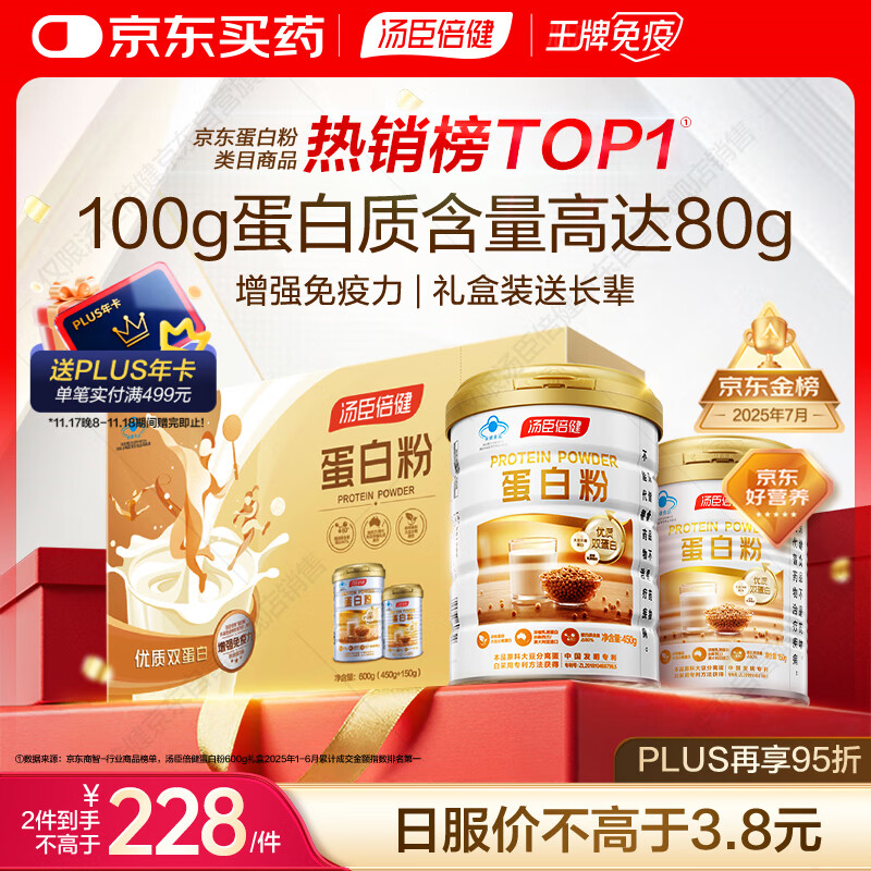 汤臣倍健蛋白粉600g增强免疫力 乳清蛋白粉儿童青少年中老年礼盒送礼