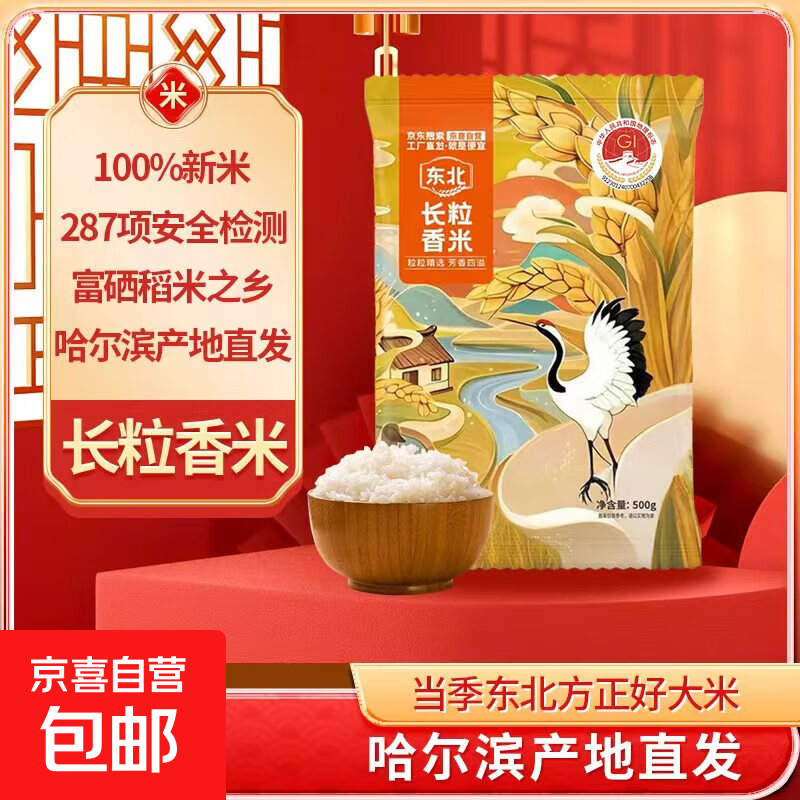长粒香米东北大米袋装现磨当季粳米新米软糯米粒饱满口感软糯 东北长粒香米500g