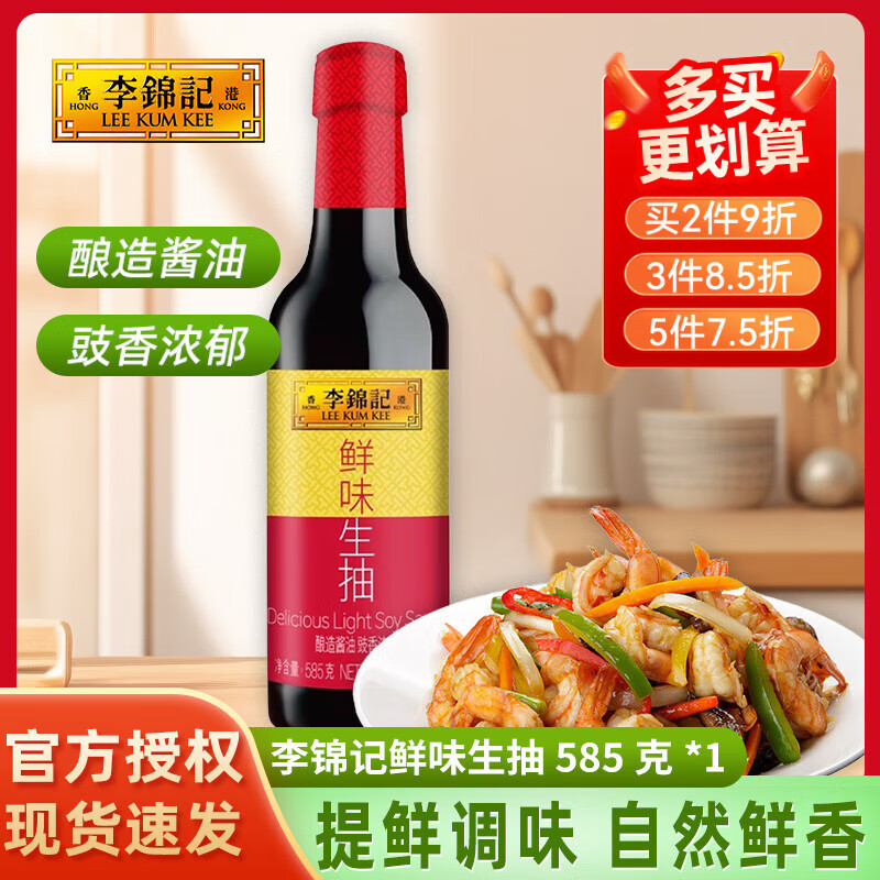 海天等品牌厨房调料组合酱油醋大米味精鸡精盐粉条佐料料酒生老抽花椒 李锦记鲜味生抽585克(PET)