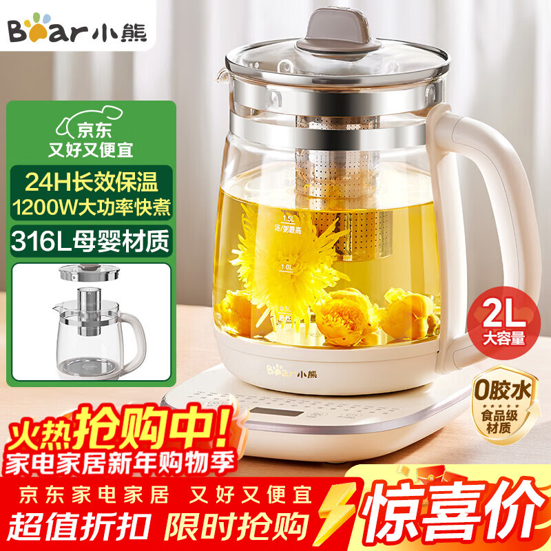 小熊(Bear)养生壶 2L大容量煮茶壶煮茶器 24H恒温花茶壶 炖煮一体烧水壶电热水壶 316L母婴材质 YSH-D20T6