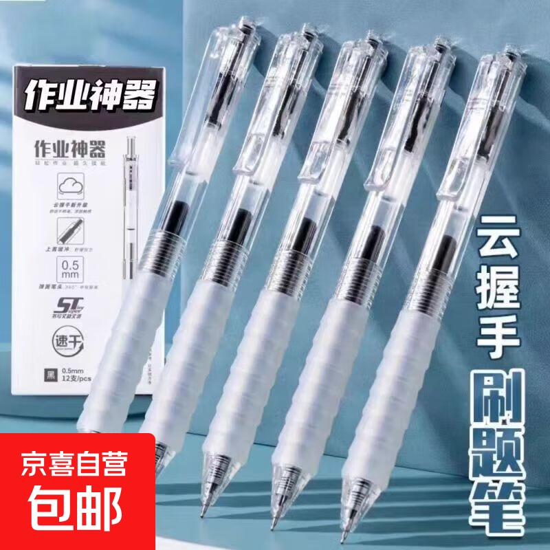 中性笔云握按动笔黑笔云握笔水笔按动中性笔学生专用签字笔黑色刷题笔水性笔 【5支装】速干ST云握中性笔/黑色