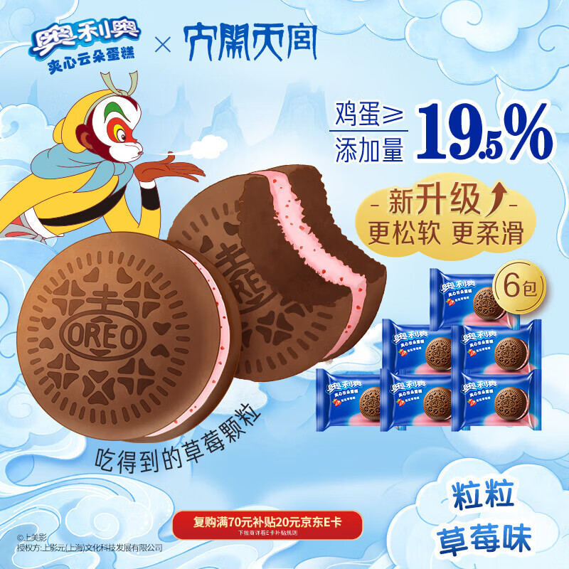 奥利奥(Oreo)夹心云朵蛋糕粒粒草莓味6枚132g 糕点休闲零食 早餐下午茶