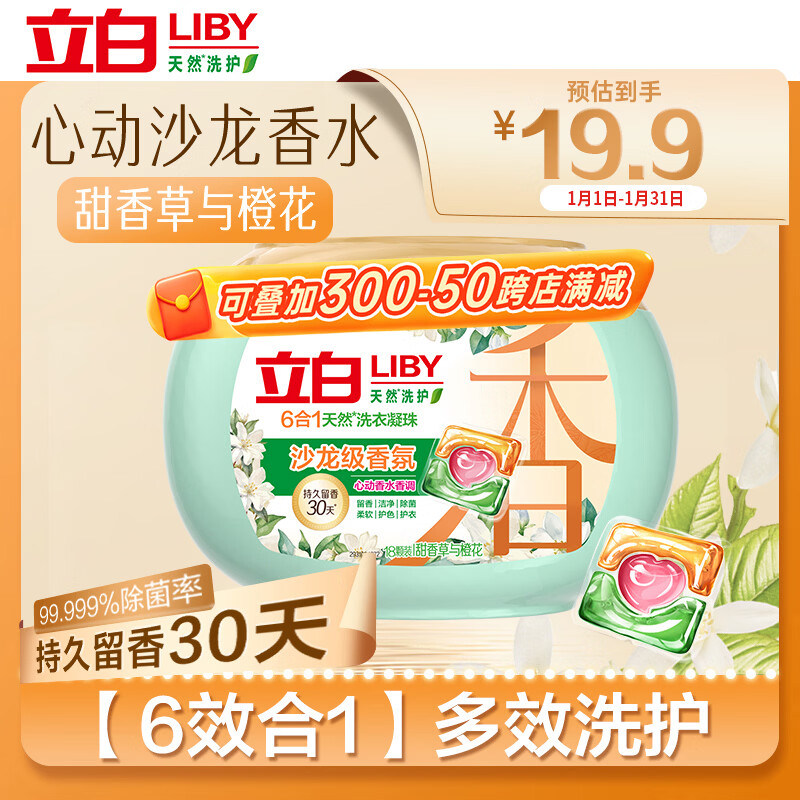 立白沙龙香氛洗衣凝珠 甜香草与橙花 18颗 三腔 留香30天 浓缩洗衣液