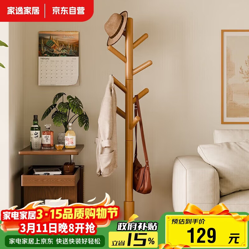 家逸衣帽架实木落地衣架卧室办公挂衣架简易衣架简约多挂钩晾衣服架子