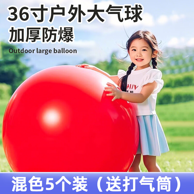 Murcia36寸超大气球儿童户外加厚彩色大号气球公园草地防爆拍拍球5个装